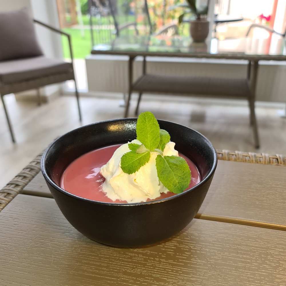 Mentás, joghurtos málnakrémleves tejszínhabbal tálalva (7)
